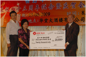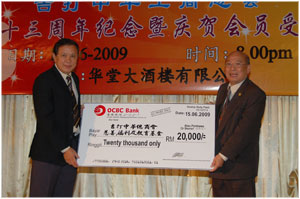 Managing Director of Ang Ah Chin Sdn Bhd presentation of mock cheque RM20,000.00 to the KCCI Charity, Scholarship And Educational Aid Fund